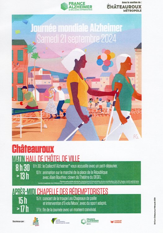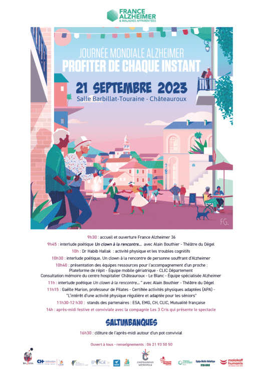 Le théâtre du DEGEL participe à la journée mondiale Alzheimer le 21 septembre 2023, salle Barbillat-Touraine à Châteauroux :