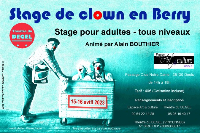 Le théâtre du DEGEL organise un stage de Clown de théâtre de 5 jours à Amboise.